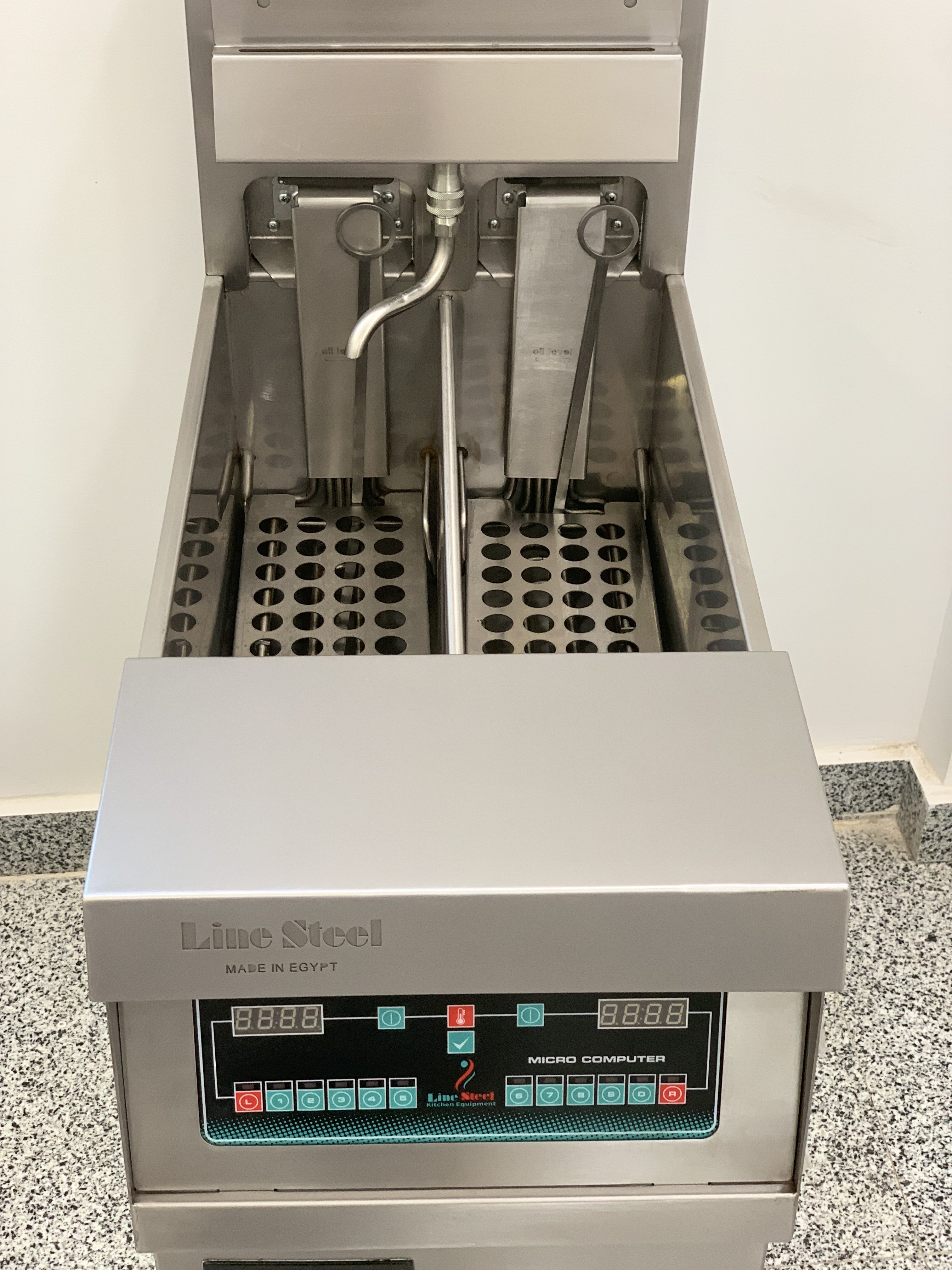 Our Split Fryer offers excellent versatility for high-volume frying. With one vat split into two sections, it allows you to fry different foods simultaneously, maintaining efficient oil use. Each section holds 9 liters of oil and can fry up to 1.5 chickens, offering a total capacity of 3 chickens. The advanced automatic filtration system ensures clean oil and consistent cooking quality.